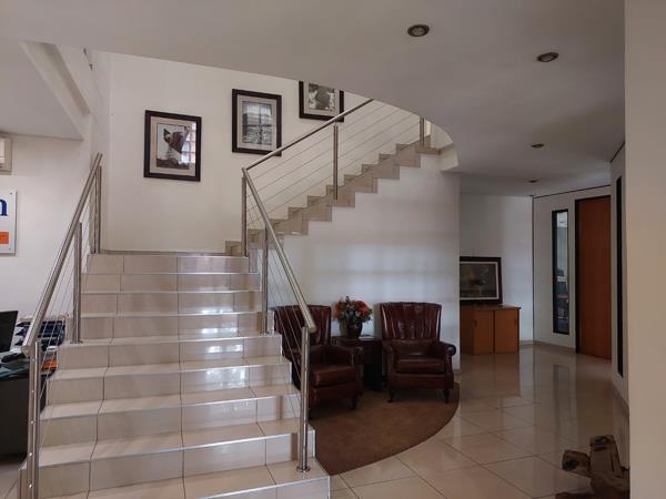 The ground floor with impressive double volume reception area consists of a 12 seater boardroom, a 6 seater meeting room, 3-4 management offices, a larger open plan office, storeroom, server room, kitchen and bathrooms. The second floor has a magnificent large boardroom, management offices, kitchen and bathrooms.