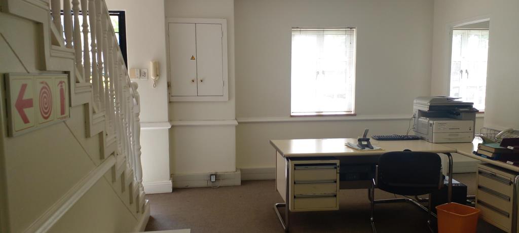 The property is configured across two storeys and features a professional reception and waiting area, a series of individual private offices, well-appointed boardrooms, and an open-plan workspace conducive to collaboration and productivity. The office benefits from large windows, providing ample natural light and panoramic views, as well as air-conditioning and standard office lighting throughout.