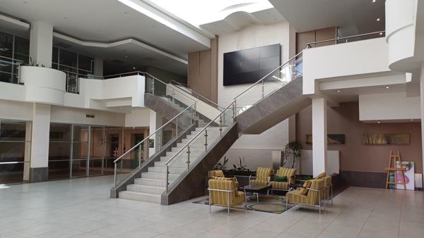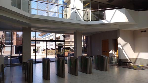 This 3-storey building should take care of most of a companys requirements. It offers a large reception area, individual offices of various sizes, open plan areas, a new attractive canteen, large catering kitchen, spacious modern seating area with coffee station, meeting rooms, boardrooms, 100-seater auditorium, patios and outdoor areas, contract staff area with kitchen and ablution facilities, a squash court, plus there is an overhead pedestrian bridge from the building across Katherine Street. The owners would also consider renting the building.