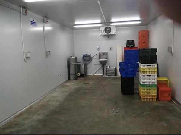 Comprising various designated areas, the facility is strategically organized to optimize operations. The meat processing area spans 1,357 square meters, complemented by a butcher room occupying 94 square meters, a plant room covering 66 square meters, and an office space totaling 170 square meters. Noteworthy additional features include holding freezers equipped with shelving for 104 pallets and floor space for 70 pallets, a blast freezer capable of accommodating 35 pallets, a dispatch freezer with capacity for 70 pallets, and a carcass chiller designed to house 200 beef sides.