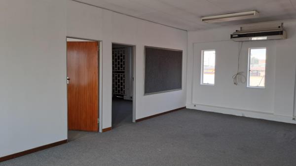 Office area Air-conditioned offices with reception, private offices, boardroom and kitchenette, and staff ablutions.