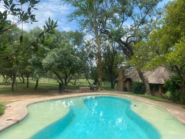 The lodge features six spacious bedrooms and six bathrooms, making it ideal for accommodation and hosting guests. Relax and unwind in the inviting swimming pool, or enjoy a drink at the on-site bar after a day exploring the bushveld.