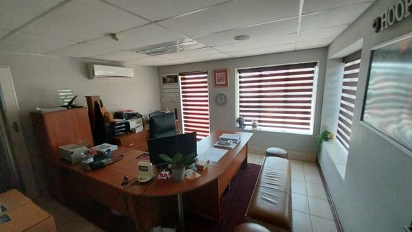 The warehouse has been equipped with 80 Amps three-phase power as well as 4 roller shutter doors, a covered loading area, a mezzanine floor, a dispatch area, and it has a height of about 7 meters. The warehouse also consists out of a crane, and 3 storerooms. The office segment comprises out of a reception area, 12 offices, 2 boardrooms, a balcony area, a dedicated kitchen area and 4 sets of ablutions. This neat unit features air conditioning, tiled flooring, and windows that allow for ample natural light to filter in. This unit has been allocated 11 open parking bays, and 8 covered parking bays for tenant and clientele use. This paved yard property offers easy access to super link trucks as well as 2 yard access points.