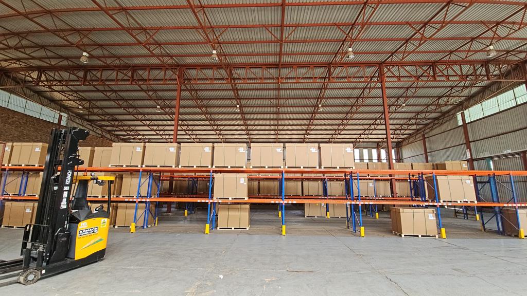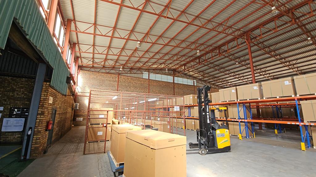 The warehouse has been equipped with 80 Amps Three Phase Power, 2 roller shutter doors, and good height to eaves. Additionally, the unit has been equipped with fire fighting equipment. The warehouse comprises out of a spacious open plan work floor complete with painted concrete flooring and will have access to conveniently located ablutions. The office segment comprises out of 3 offices, a boardroom area, a dedicated kitchen area and access to ablutions. The office features air-conditioning, neat tiled flooring as well as windows that provide natural light.