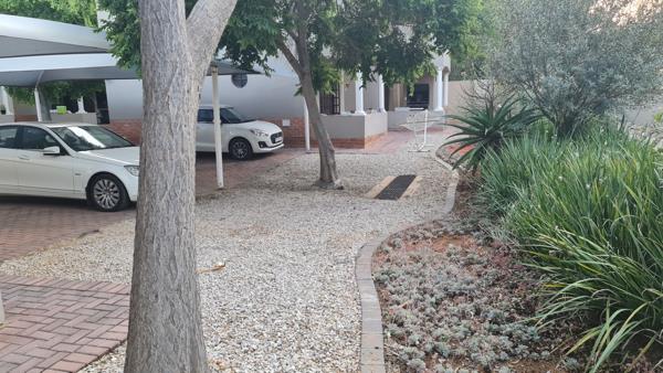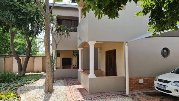 House 1 is a charming single-storey residence featuring four bedrooms, two of which are en-suite, each equipped with built-in closets. It includes three bathrooms, two of which are en-suite. The home boasts a spacious open-plan lounge, a covered patio with a built-in braai, and a kitchen with a separate scullery.