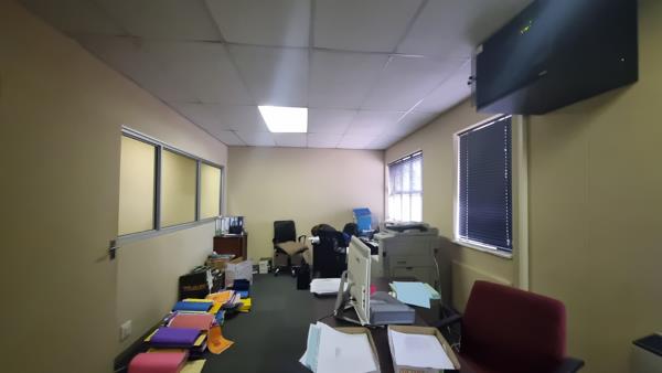 The office space to let is 109 square meters in size, and it consists of reception area, 3 closed office components, a kitchen, and ablutions. It features air-conditioning to contribute to enhancing the air quality in the workplace. The working space is fitted with carpeted flooring and windows with blinds, allowing natural light to brighten up the office.