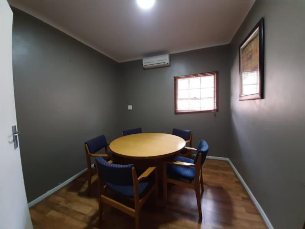 Comprising out of a large 430 square meter building, this property presents a communal reception area, nine spacious closed office components, a boardroom facility, a kitchen area and three sets of ablutions. It is equipped with tiled flooring, air conditioning units, blinds, ample large windows that allow a great amount of sunlight to filter in and exceptional signage opportunity providing your well-established company with great visibility.