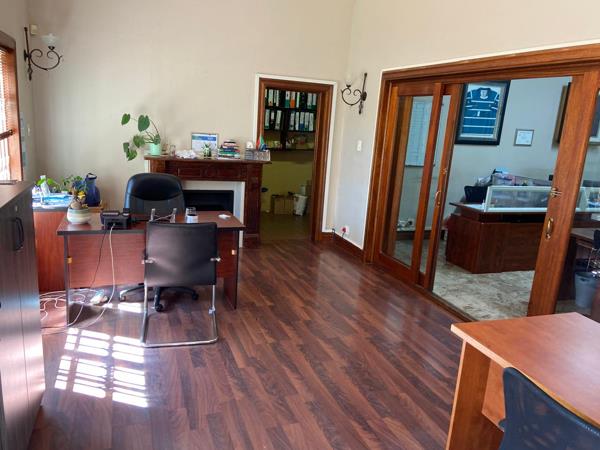 With 8 private offices, 4 open plan areas, full kitchen, bathrooms and ample parking. One portion is currectly let out and consists of 128m2.