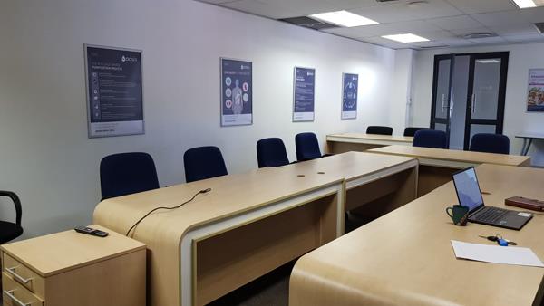The Office Park is situated in the thriving area of Equestria, Pretoria. This office is a 528 square metre working space that offers a reception area, a spacious boardroom and is compartmentalised into closed offices, an open-plan space, a kitchen and ablutions. The working space is fitted with carpeted flooring and windows with blinds, allowing natural light to brighten up the office.