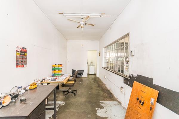 The property is currently used as a workshop (car repairs) with a total floor area of approximately 300 sqm (office, workshops, kitchen, and bathrooms). The property is located within walking distance of the new Krugersdorp taxi rank, Mogale City offices, and other amenities.