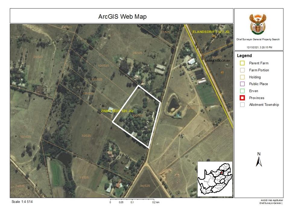 Additional 6 hectares available below stretching down to the spruit for R4.2 million made up of 3 x 2 hectare sub divisions. Portion 103 has a large double storey house.