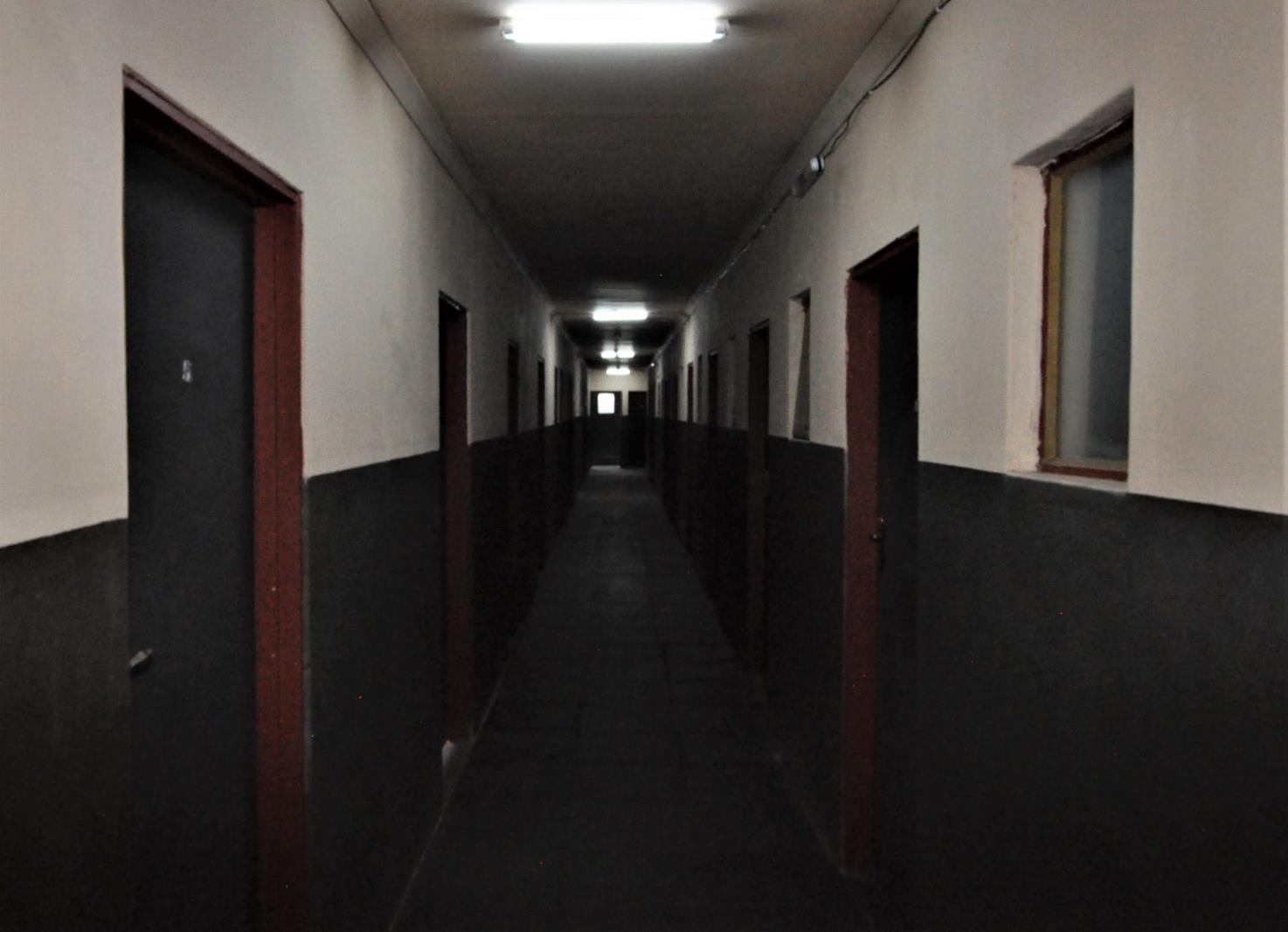 The facility features 48 individual accommodation rooms, supported by comprehensive communal amenities. A large, well-equipped communal kitchen includes multiple electric cooking hobs and a double stainless steel sink. Four communal washrooms offer multiple shower stalls and basin fixtures, designed for durability and ease of maintenance. Functional lighting and essential fire safety equipment are integrated throughout the interior hallways. Each unit benefits from individual digital electricity meters, simplifying utility management and billing.