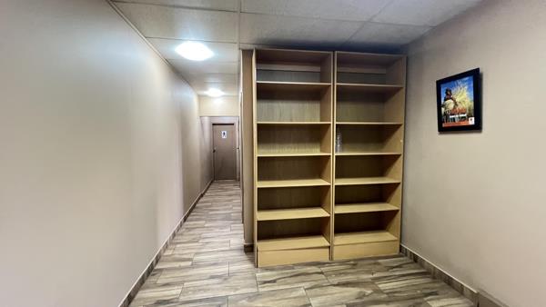 A solar system with an inverter and two batteries ensures uninterrupted power supply, making this a secure and highly functional business space.