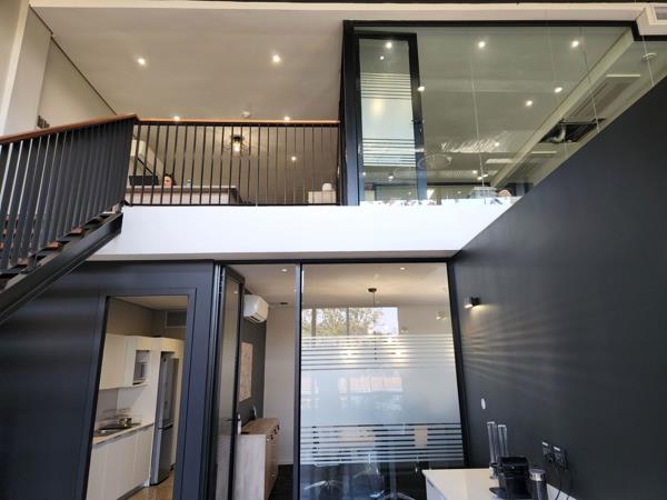 The office is 126sqm and is double volume with an upstairs mezzanine level of 29sqm.