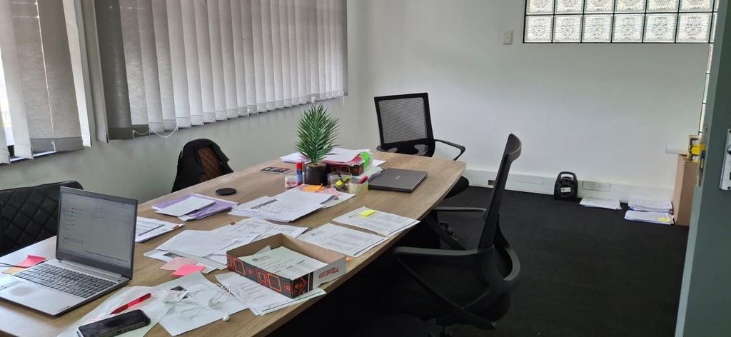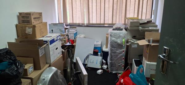 Spacious reception area, board room, private office, large open plan office, kitchen, toilet and stock room.