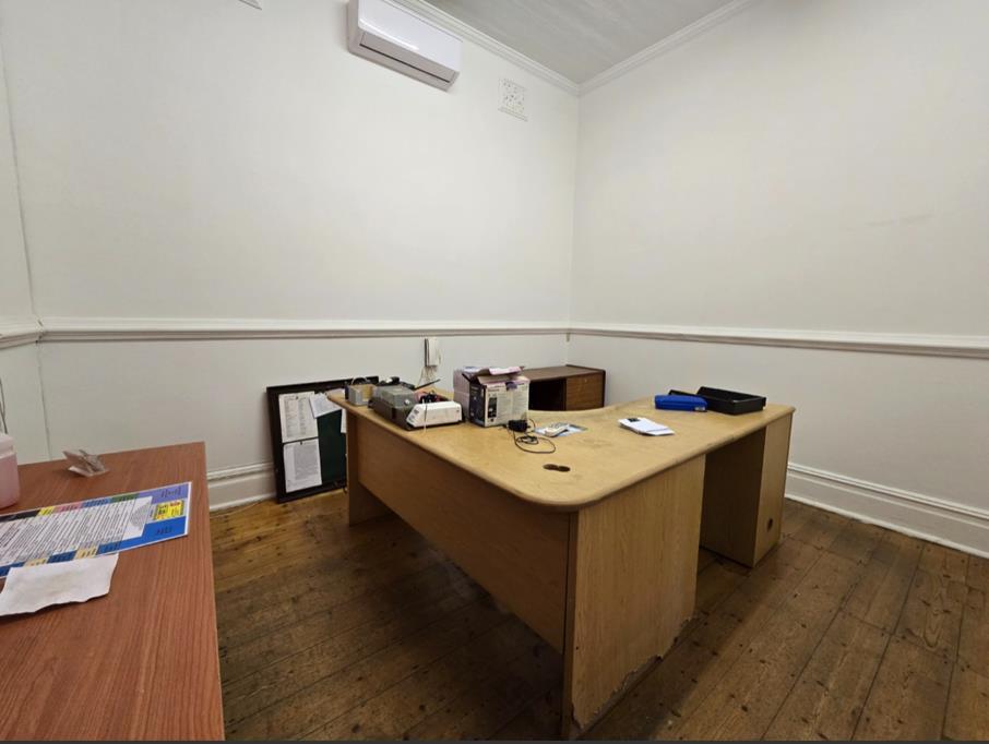 This outstanding property offers four generously sized offices with stylish wooden flooring throughout, all fully air-conditioned to ensure comfort and enhance productivity. It also features a convenient kitchenette and a separate 1-bedroom flatlet, providing added flexibility. The property includes a secure garage and additional parking space for up to three vehicles. For added security, it is equipped with an alarm system, access control, and electric fencing.