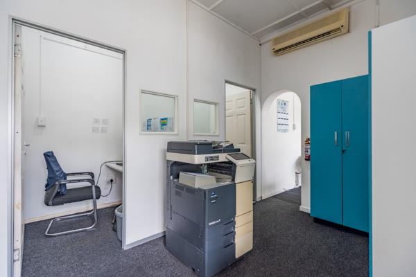The downstairs unit is already partitioned into functional office spaces and further enhanced by a spacious outdoor area, perfect for staff functions, client events, or informal meetings. This is an exceptional feature for a Florida Road office environment.