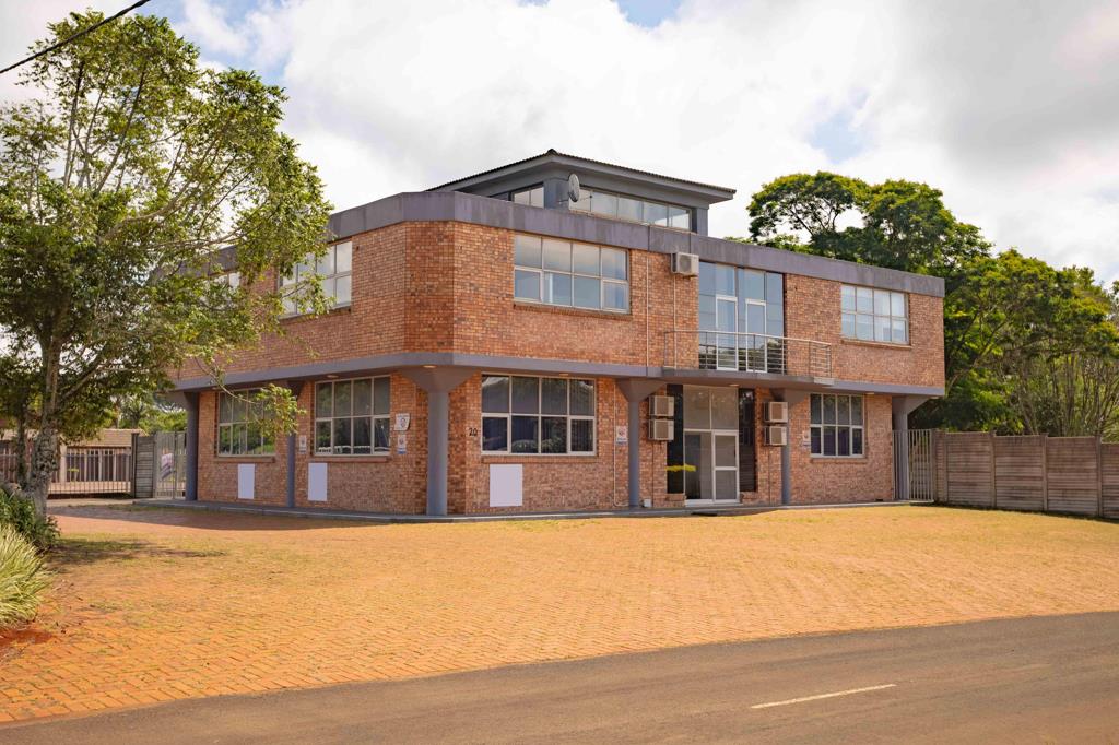 This double storey office block is located in the tranquil suburb of Forest Hills and conveniently situated between Kloof and Waterfall. The building is divided into 3 separate sections: The ground floor has a reception area, boardroom, server room, kitchen, ablution facilities and the 5 partitioned offices are divided by dry-walling so can be reconfigured to your needs. Upstairs are 7 offices also partitioned by dry-walling, an open plan reception with aircon and a seating area, kitchenette and his and hers ablutions. A spacious balcony overlooks the park in front.