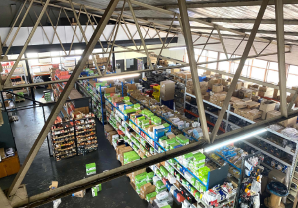The ground floor fronts directly onto Shepstone Road and consists of an open warehouse area, currently used as a retail space for a vehicle spares store. This level also includes ablution facilities, a kitchenette, and a mezzanine storage area. The unit has an eaves height of approximately 4.6 meters and an apex height of roughly 7.1 meters to the underside of the roof sheeting. The current tenant has occupied this space for around nine years.