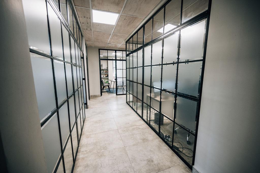 This office space is made up of two sections and has been open planned into a tastefully designed workspace. It is a mix of open plan desks, private offices and boardrooms with a reception area at the entrance.