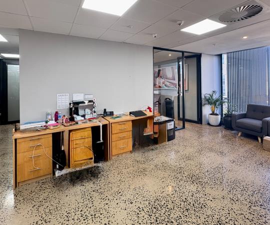 The unit includes three secure underground parking bays and access to shared kitchen and toilet facilities. There is also the option to install a private kitchen, allowing for greater customisation to suit your operational needs.