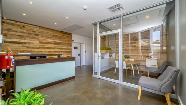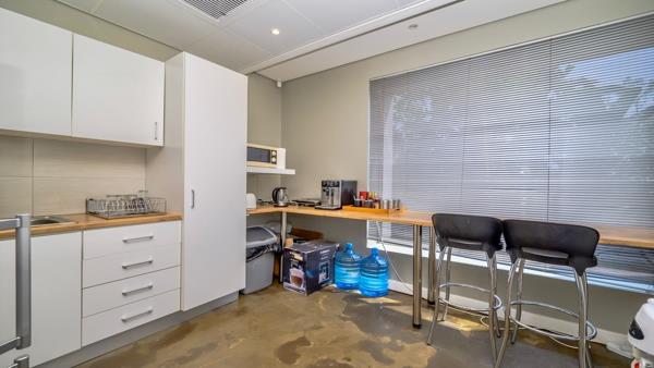 The current configuration includes a reception area, meeting room, a private boardroom, an open-plan work area that can be further partitioned, a large dry walled and separately airconditioned server room, a private kitchenette, 2 ablution facilities and 5 undercover parking bays, 1 open undercover parking and 3 visitor parking bays. In addition there is a large shared generator to guarantee continuous power and the complex has backup water tanks.