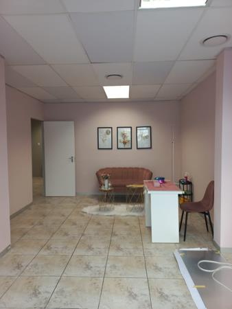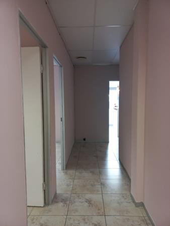 -The ground floor consists of a reception area, kitchen area that leads out onto a back entrance where the parking is located, a partitioned office, a boardroom, and ablution with shower.