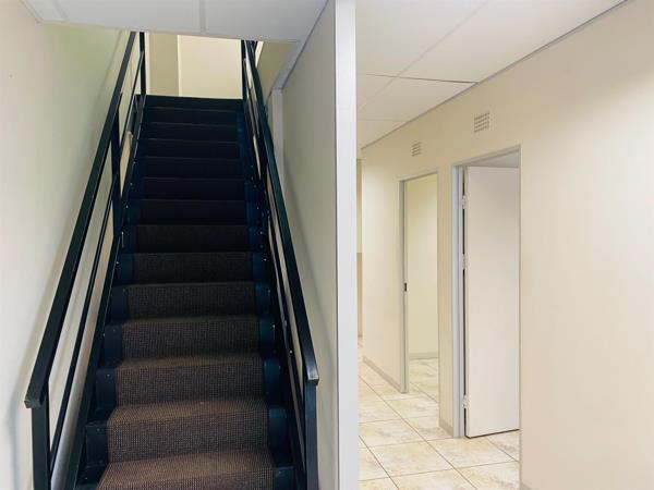 a fully equipped kitchen, and modern ablution facilities. Upstairs, there are four partitioned offices,