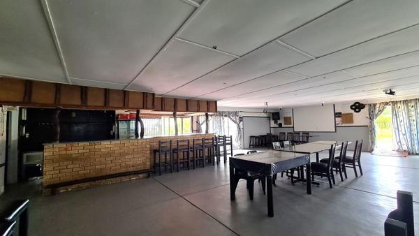 The fully equipped and furnished venue boasts a sprawling restaurant, a built-in bar, and outdoor braai facilities on the patio with a view of the pool. The well-appointed kitchen houses all the essential equipment, complemented by a secure storage room. Pristine restroom facilities enhance the overall experience.
