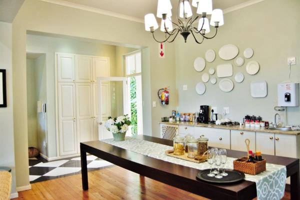 The large dining room has plenty of space for all the guests to enjoy the bright and breezy feel and there is also a covered outside patio if you prefer alfresco dining in the hot sunny summer days of February. The fully fitted kitchen is adjacent to the dining room and is practical and efficient with fitted gas stoves and plenty of shelf and cupboard space. There is also a guest toilet off the dining room.