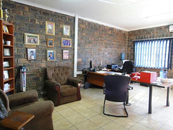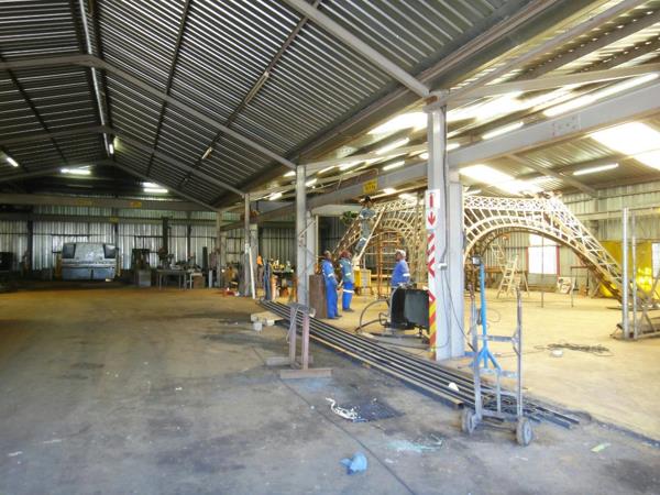 The back workshop includes cranes and roll-up doors for easy access and also offers a smaller office block.