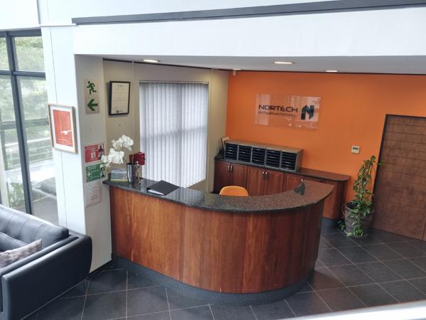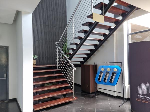 This stand-alone double-storey office building offers an impressive 1,150m of premium office space, featuring double-volume areas, high ceilings, and a modern, corporate aesthetic.