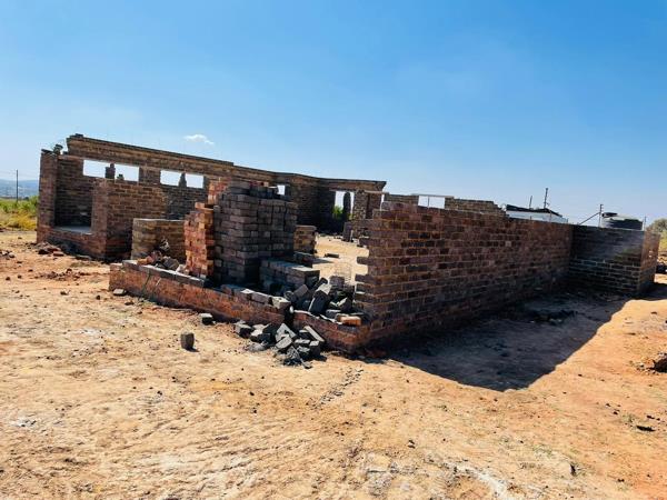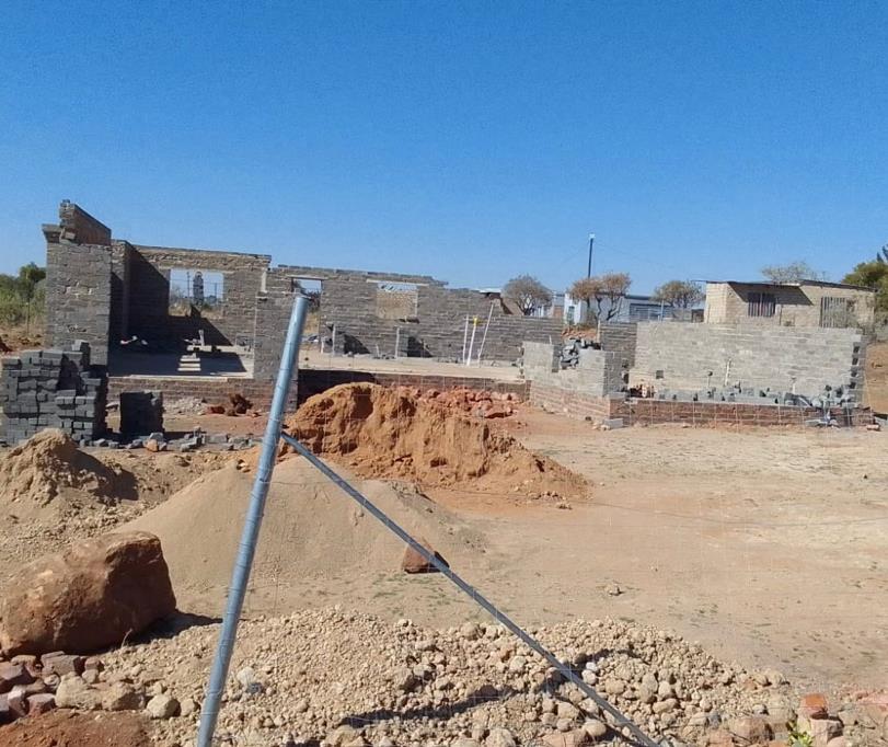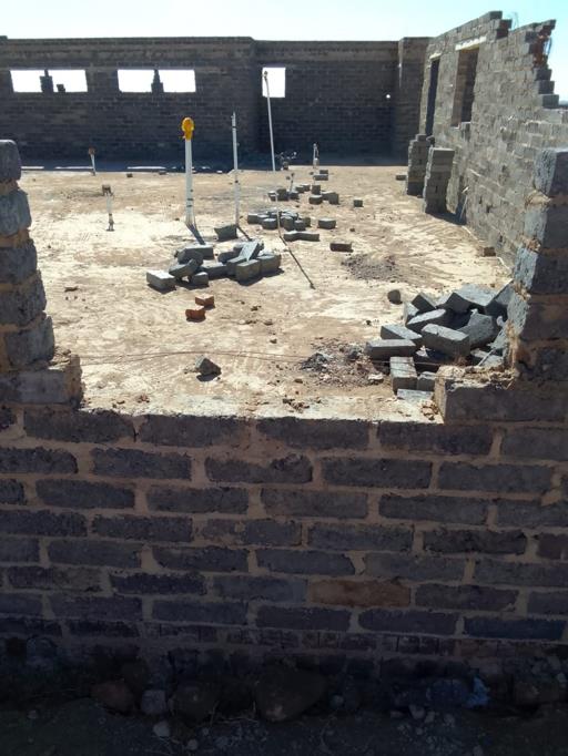 Its a 3 bedroom and 3.5 bathroom, open plan lounge, theres garage, we use bricks for foundation and maxi blocks for the walls, theres few blocks and river sand on the stand.