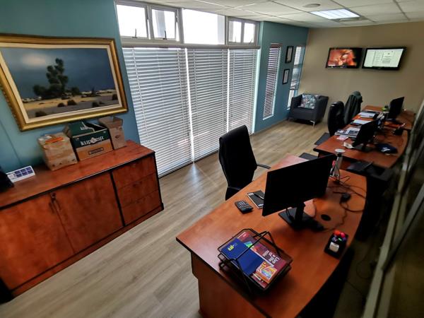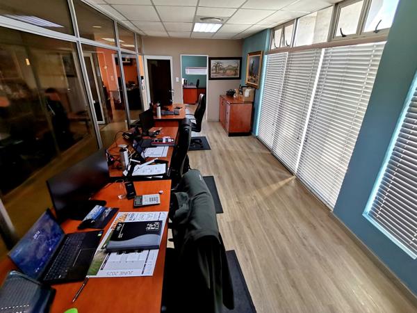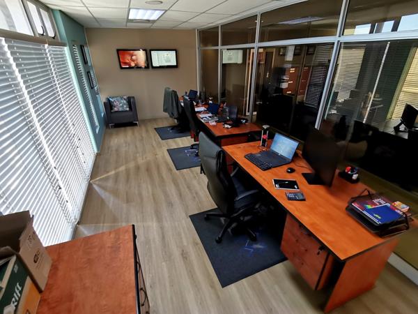 Security is a top priority, with the office situated within a secure office park that is protected by an electric fence and a controlled access security gate, offering a safe and professional environment surrounded by other established businesses.