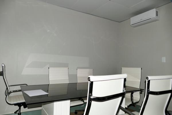 Features include a reception area, boardroom, administration office, and main office, all equipped with air conditioners.