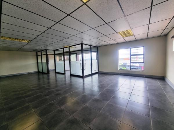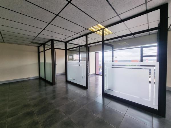 The property features two well-appointed private offices, each boasting large glass windows that not only provide abundant natural light but also showcase scenic views of the vibrant Polokwane surroundings. These offices offer the perfect setting for focused work or important client meetings, ensuring both comfort and professionalism. Coupled with the open plan area, this office layout promotes a dynamic work environment that can adapt to various business operations.