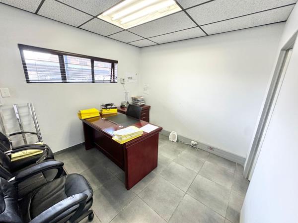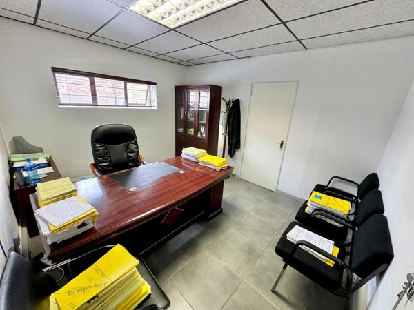 As you move further into the office, youll find two private offices, each designed to offer comfort and privacy. One could serve as an executive workspace, the other as a meeting or consultation room adaptable to your businesss unique needs. The small, fully fitted kitchen ensures staff have a convenient area to prepare refreshments, while the neatly maintained bathroom with a basin and toilet adds practicality to everyday operations.