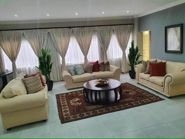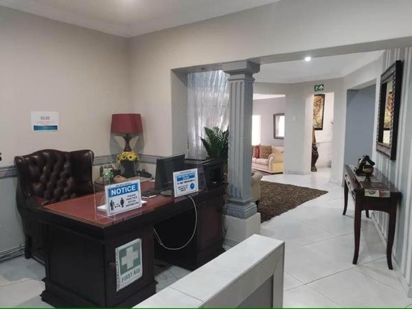 As you approach, an access gate opens to reveal a fully fenced property with a garden, setting the tone for the inviting atmosphere that awaits. The entrance hall welcomes you into a space that seamlessly combines functionality and elegance, featuring multiple living and entertainment areas. With a total of four lounges and two dining rooms, this guesthouse offers ample room to accommodate guests in style and comfort. The thoughtfully designed kitchen is complemented by a scullery, pantry, and separate laundry facilities, ensuring efficiency in managing daily operations. A spacious patio adds an outdoor charm, ideal for relaxation or hosting guests in a tranquil setting.