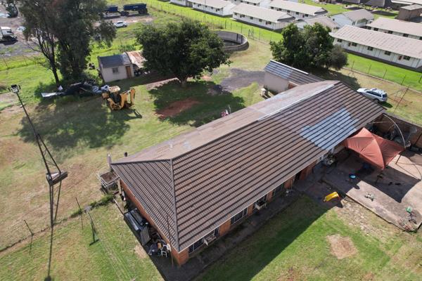 A spacious house on the property, with 4 bedrooms, kitchen, dining room, and 2 bathrooms. Second dwelling with 2 bedrooms, bathroom, kitchen and lounge. Also equipped with 10 staff rooms with two ablutions, 3 storerooms and carports.