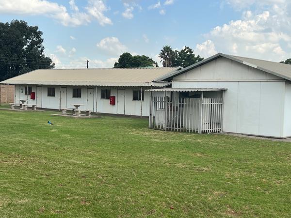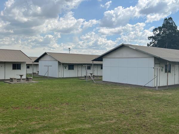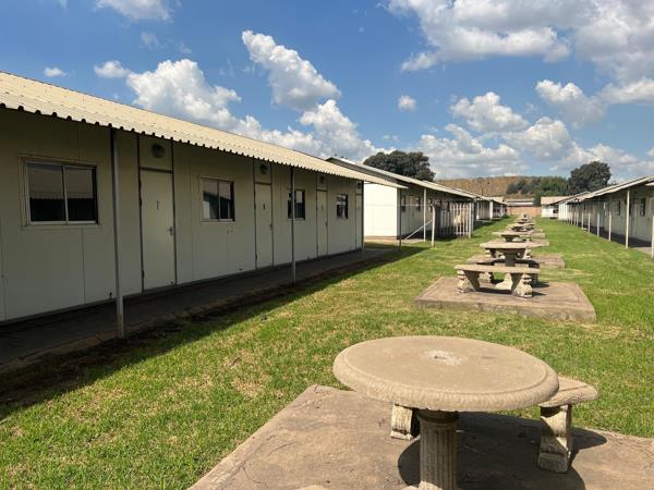 Kendal Kamp Accommodation, 160 rooms. This property has accommodation facilities consisting of 160 rooms, that can sleep 320 residents on single or 3/4 beds. Two double cupboards in a room and a desk and chair. There are 8 ablutions which consist of 112 toilets, 112 showers, 112 basins and urinals. Self-sustained bacteria plant and 90 000 liter water storage, with a borehole. Each ablution has a separate heat pump and holding tank. Carports and fields. Equipped with a gym on the property. Perimeter security and lighting. Staff accommodation, dining room, entertainment room, kitchen, separate laundry, separate scullery, linen room and storerooms. Chemical room, a guard house with CCTV cameras.