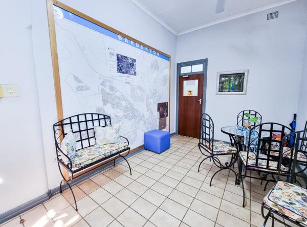 It consists of four separate offices and a boardroom. All the rooms have air conditioning, with security gates, burglar bars and an alarm system installed throughout the building.