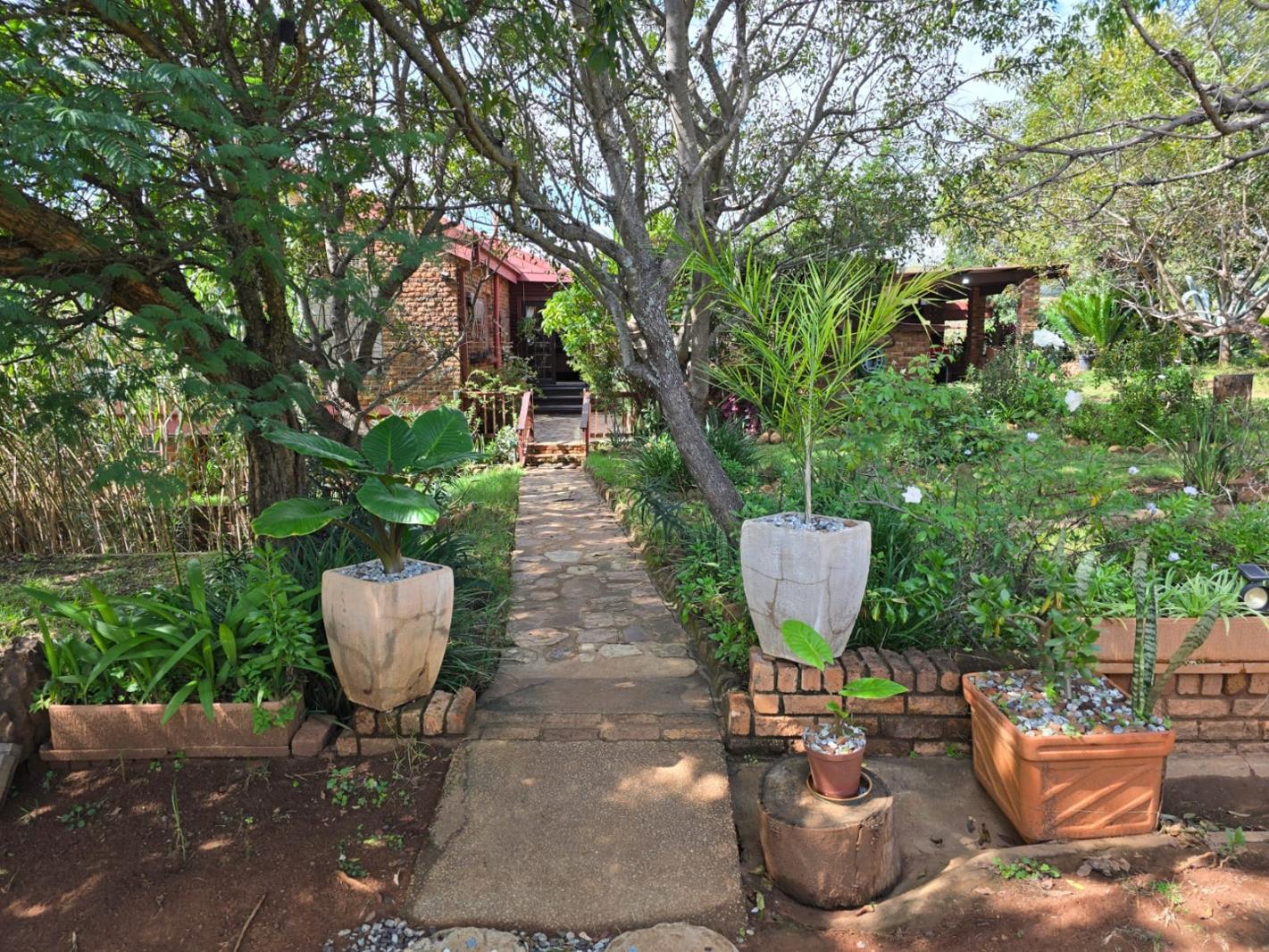 Outdoors, guests can enjoy a built-in braai area, a generous deck with stunning scenic views, and a patio thats perfect for relaxation or social gatherings. The lush garden surrounds a peaceful courtyard with a fountain, adding to the serene ambiance, while a sparkling swimming pool with sunlounger chairs offers the ideal retreat on warm days.