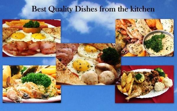 Cocktails and sundowners are part of our game. Their specialties are chicken, prawns, calamari and codfish not to mention their 18-page menu.