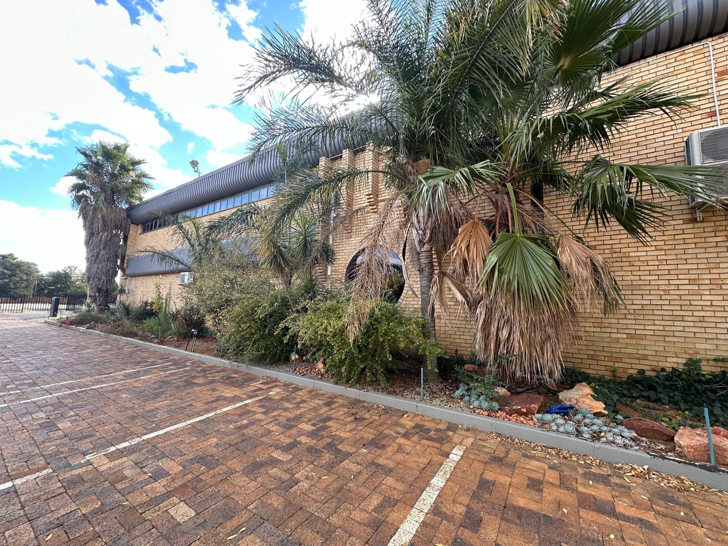 Modern, face brick commercial building, with enclosed parking terrain at the front in extension 1 of Flamwood.