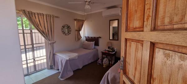 Here is an opportunity to invest in a property that is presently utilized as a guest house. The house has 4 bedrooms with the main bedroom having en-suite bathroom. There are two spacious lounges and a Tv room and guest bathroom. There are six guest rooms outside and each room is equipped with a toilet, a shower and one has a bath and they are all self-service. All the rooms have air conditioners. The pool is well maintained and is next to the large lapa with the braai area close by. There are 8 car ports for the guests and a lockable double garage. The house has an alarm system and the yard has an electric fence and an automated motor gate.