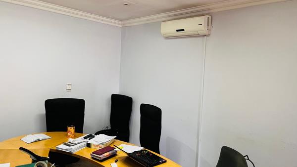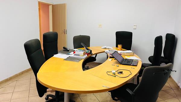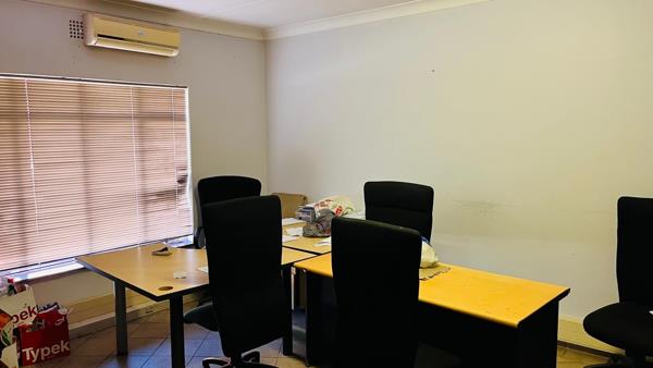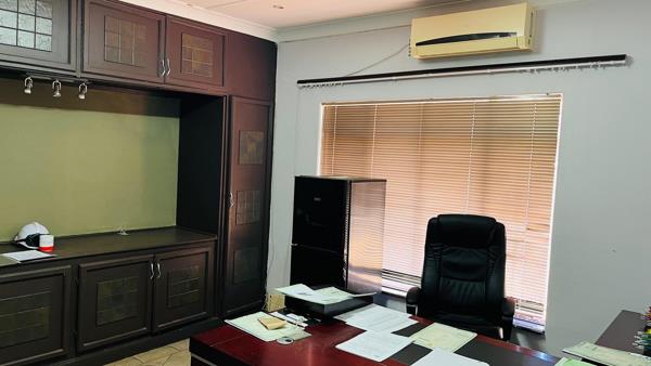 The property is equipped with air conditioning throughout, ensuring a comfortable working environment. For added convenience the premises include 3 separate toilets, accommodating both stuff and clients. There is a steal frame building that is used as a storage space.