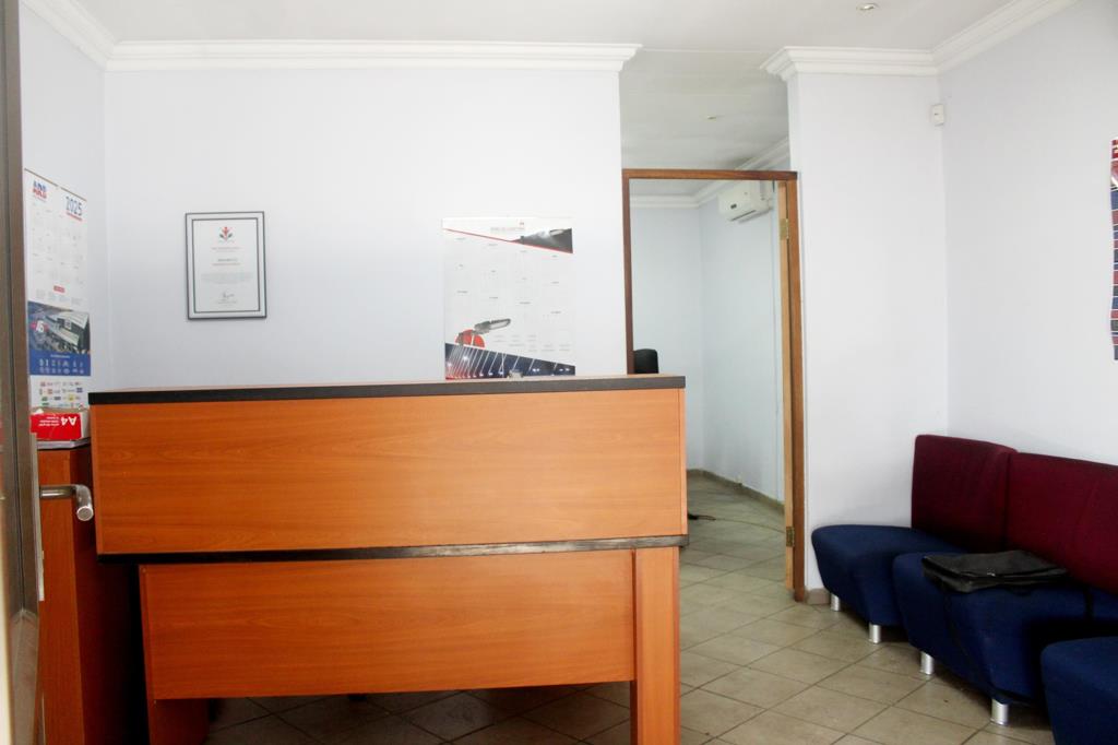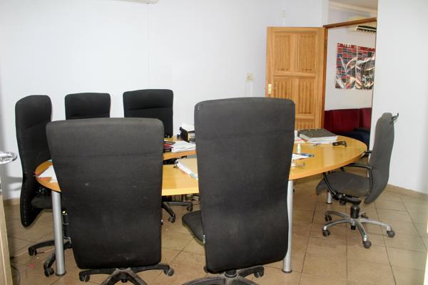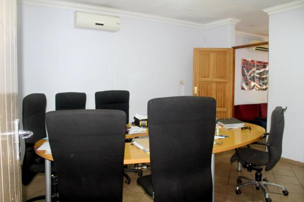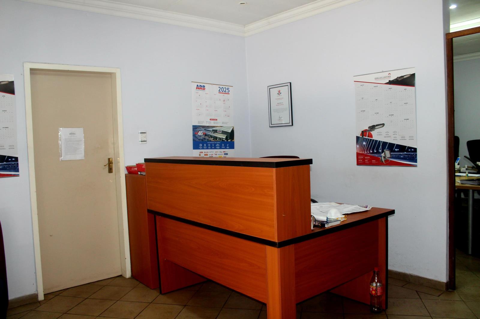 The building offers a reception area, boardroom, and four offices, one including a mini storeroom. Additional features include a mini kitchen and three toilets one inside and two outside at the back.