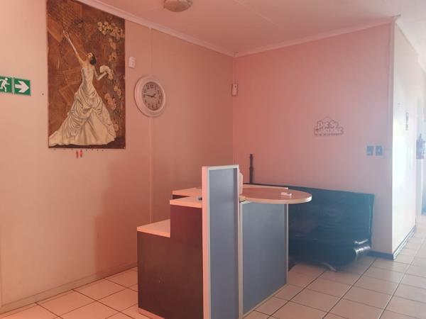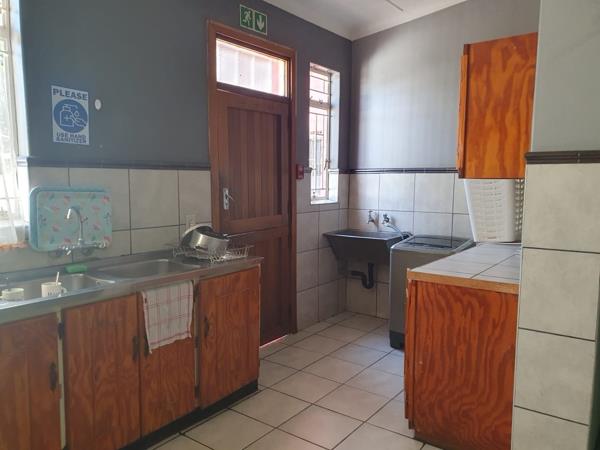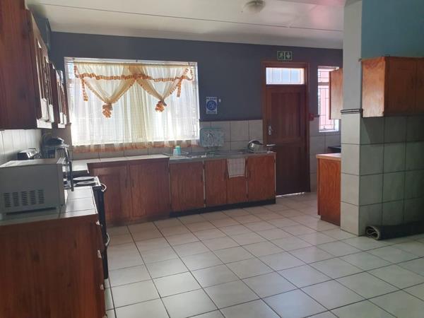This home features: 8 bedrooms, 3 en-suite bathrooms, reception area, large kitchen, braai area as well as a swimming pool. Ample parking space.
