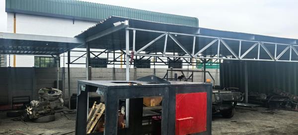 Additional features include a storeroom, an under-roof storage area, an entertainment area, and an outside bathroom with a changing area. The property is further enhanced by a wash bay, a borehole, and a three-phase electrical box, making it suitable for a variety of industrial or commercial operations.