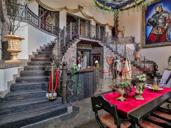 But lo! Let us not overlook the splendor of the castle''s exteriors. As thou first step into the courtyard, thou shalt be astounded by the magnitude of this grand complex. A gateway to a bygone era lies before thee, beckoning thee to traverse through time. Within this unique castle, there lies a harmonious interplay between public and private spaces. The opportunities are endless, from the enchanting boutique hotels to the splendid restaurant, conference rooms, wedding venues, and joyful playgrounds. Thou may even partake in hosting thy own LARPing events, where reality and fantasy intertwine.